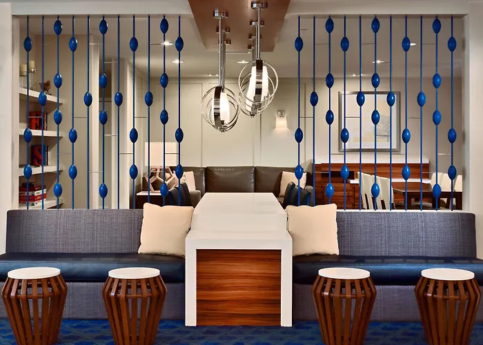 The upscale Renaissance Concourse Atlanta Airport features a Mediterranean breakfast. Choose from an unlimited choice of American dishes at Five Guys which is a 20-minute ride away.